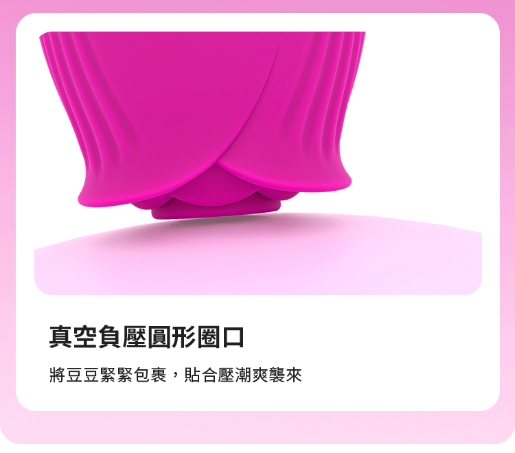 真空負壓圓形圈口,將豆豆緊緊包覆,貼合之間,潮爽如浪湧來,一波接一波,讓你沉溺其中。