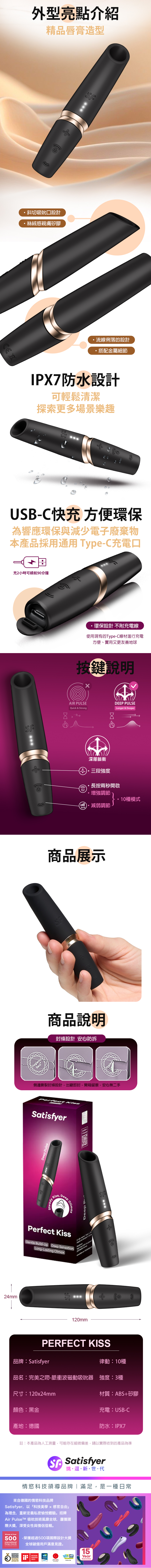 品名:Satisfyer|Perfect Kiss|完美之吻脈衝波磁動吸吮器 黑金