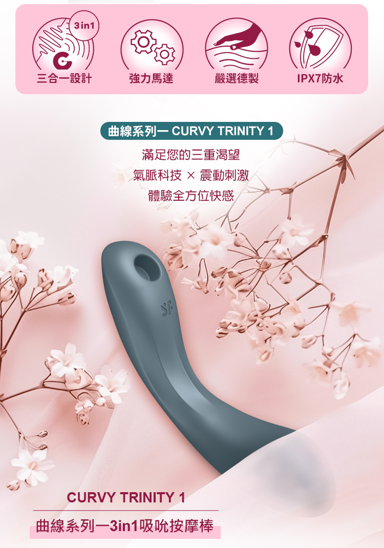 品名:Satisfyer|Curvy Trinity 1|曲線吸吮按摩棒 藍灰